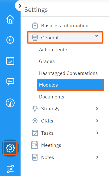 From the left menu navigate to Settings → General → Modules.