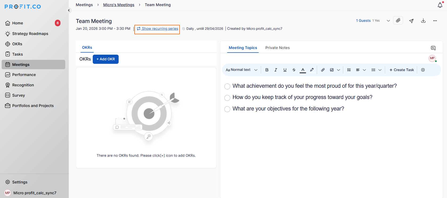 Profit.co’s mobile application allows users to quickly initiate and schedule different types of meetings, such as ...Read more