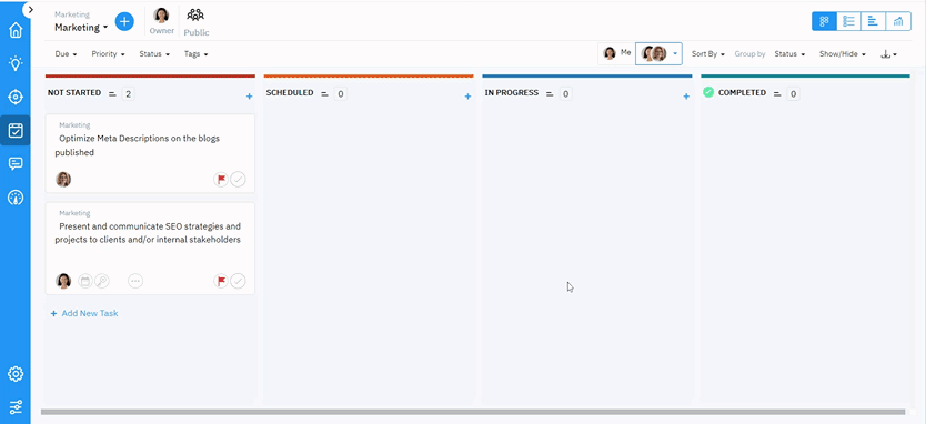 Profit.co allows an option to set recurring tasks within a scheduled time frame without any interventions. You can schedule the recurring tasks in advance.