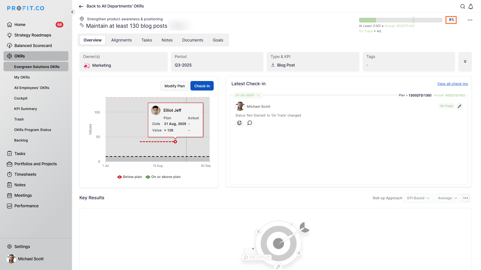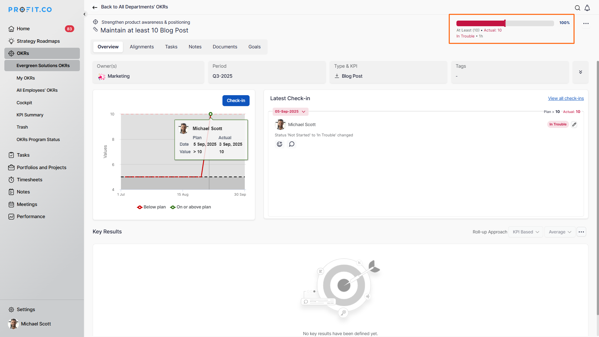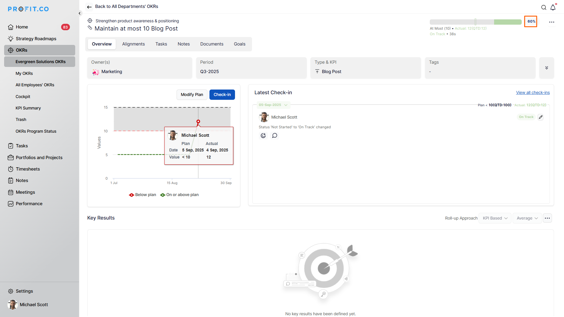 Profit.co gives users the flexibility to update their progress on OKRs without penalties for missing specific check-in ...Read more
