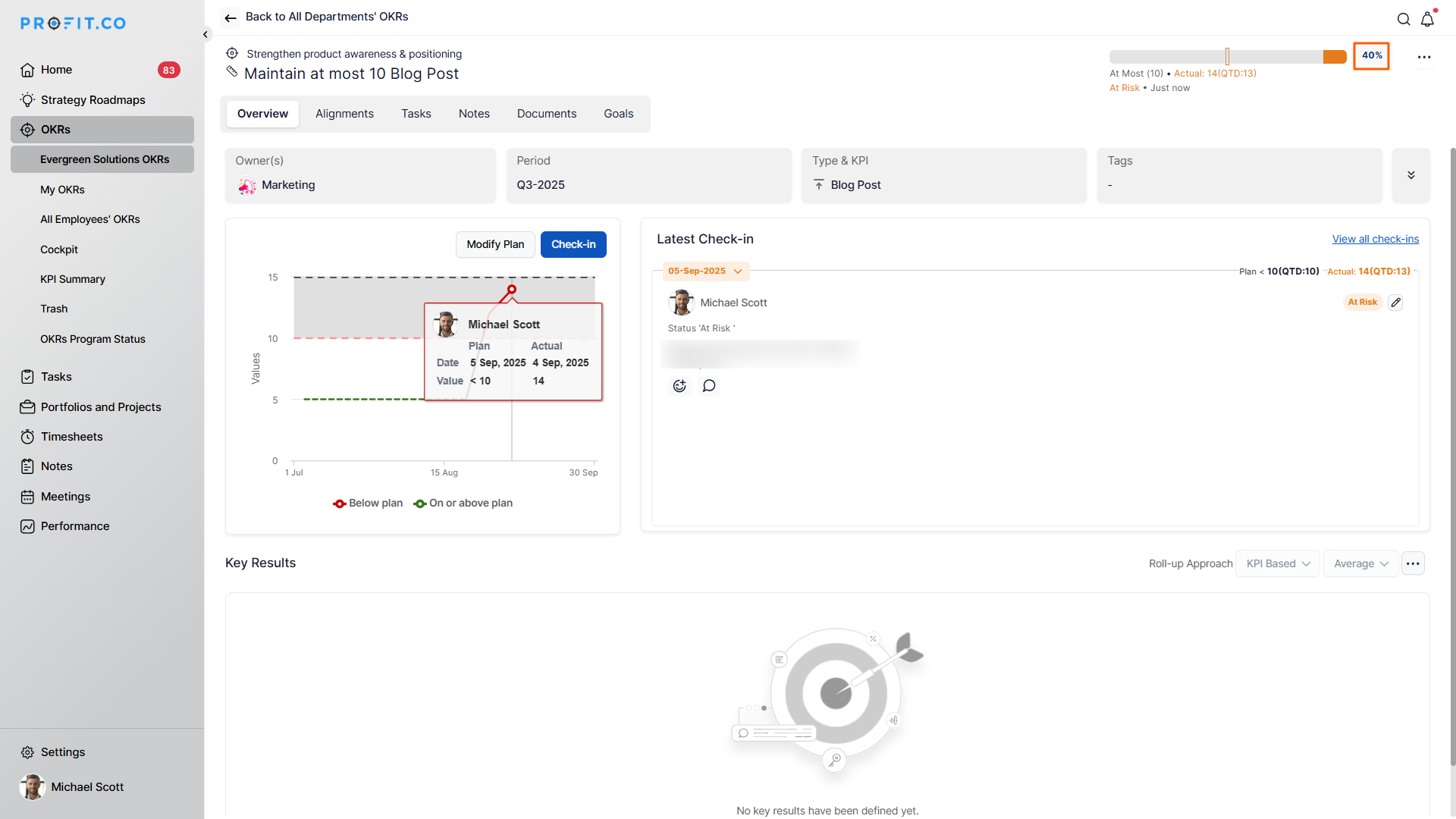 Profit.co provides an option to create Key Results that are tracked using a project. Why this feature? By linking ...Read more