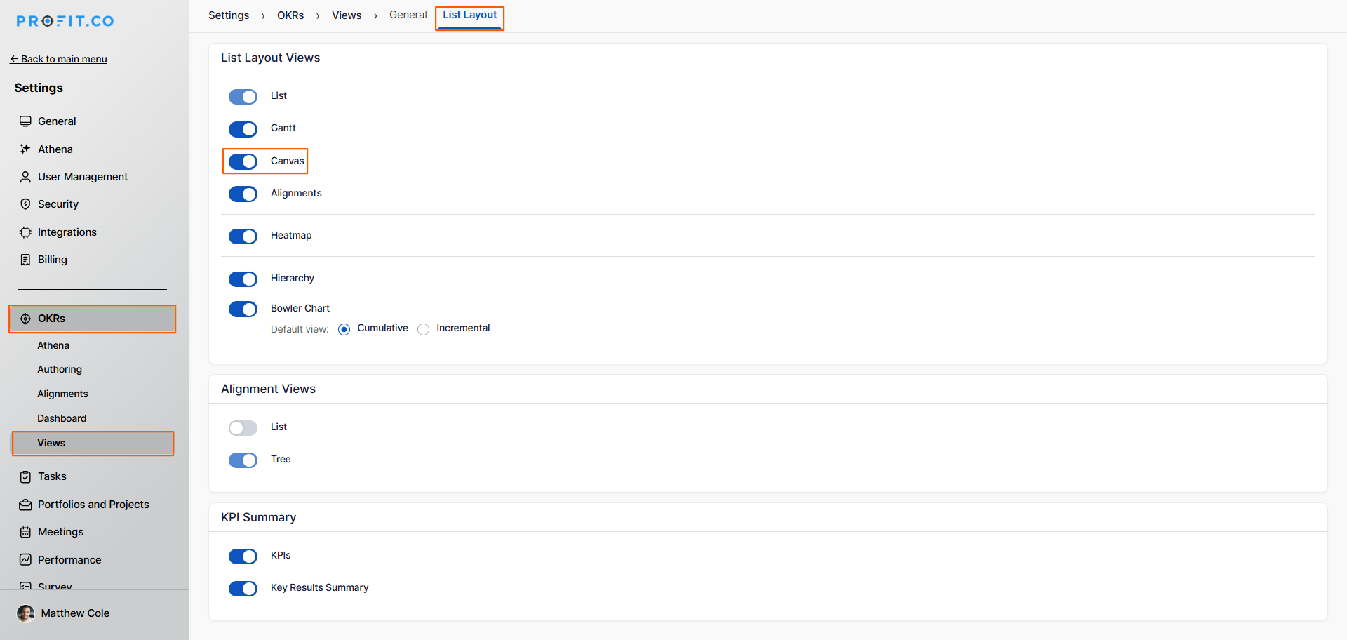 How to Enable the OKR Canvas View in Profit.co?
