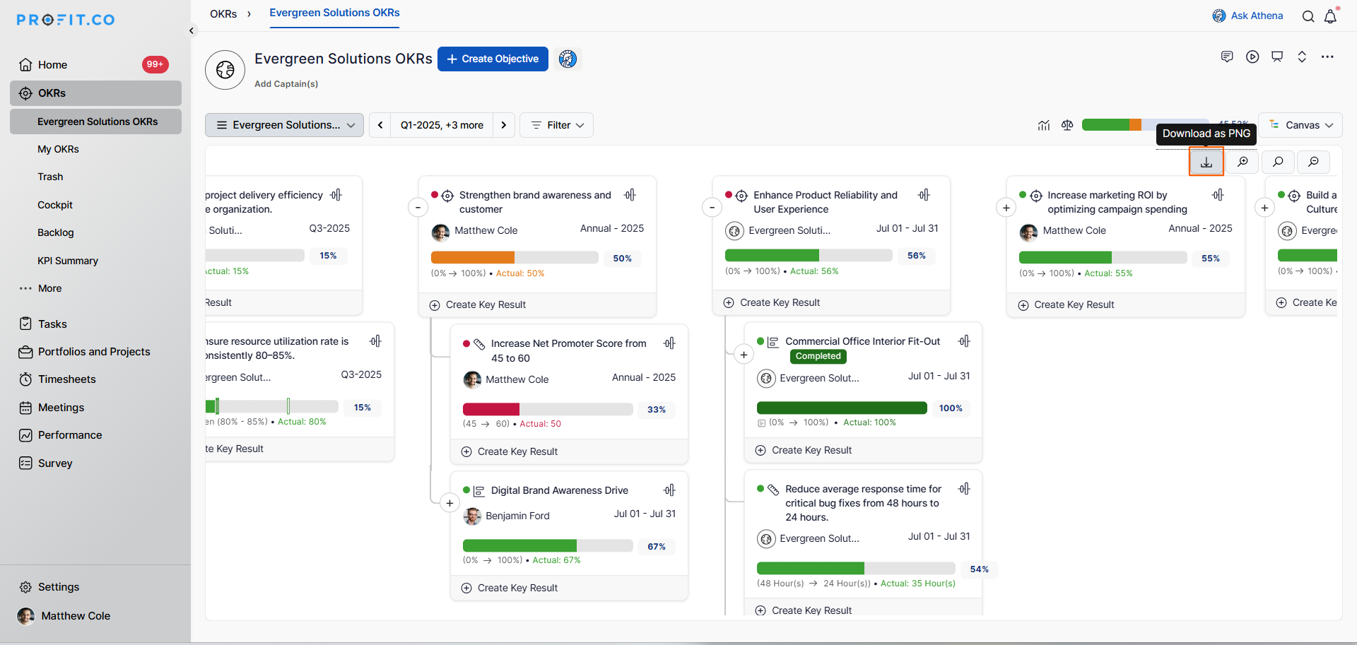 - Provides a downloadable snapshot of your OKR structure as a PNG file for reporting and stakeholder communication.