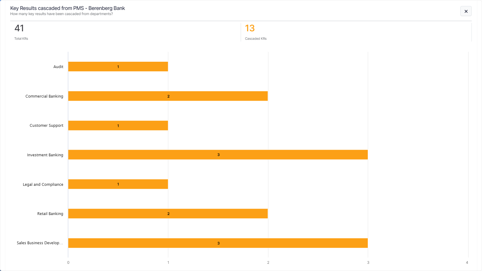 This feature “Key Results cascaded from Corporate“ displays the count of key results that have been cascaded from Corporate to Departments.
