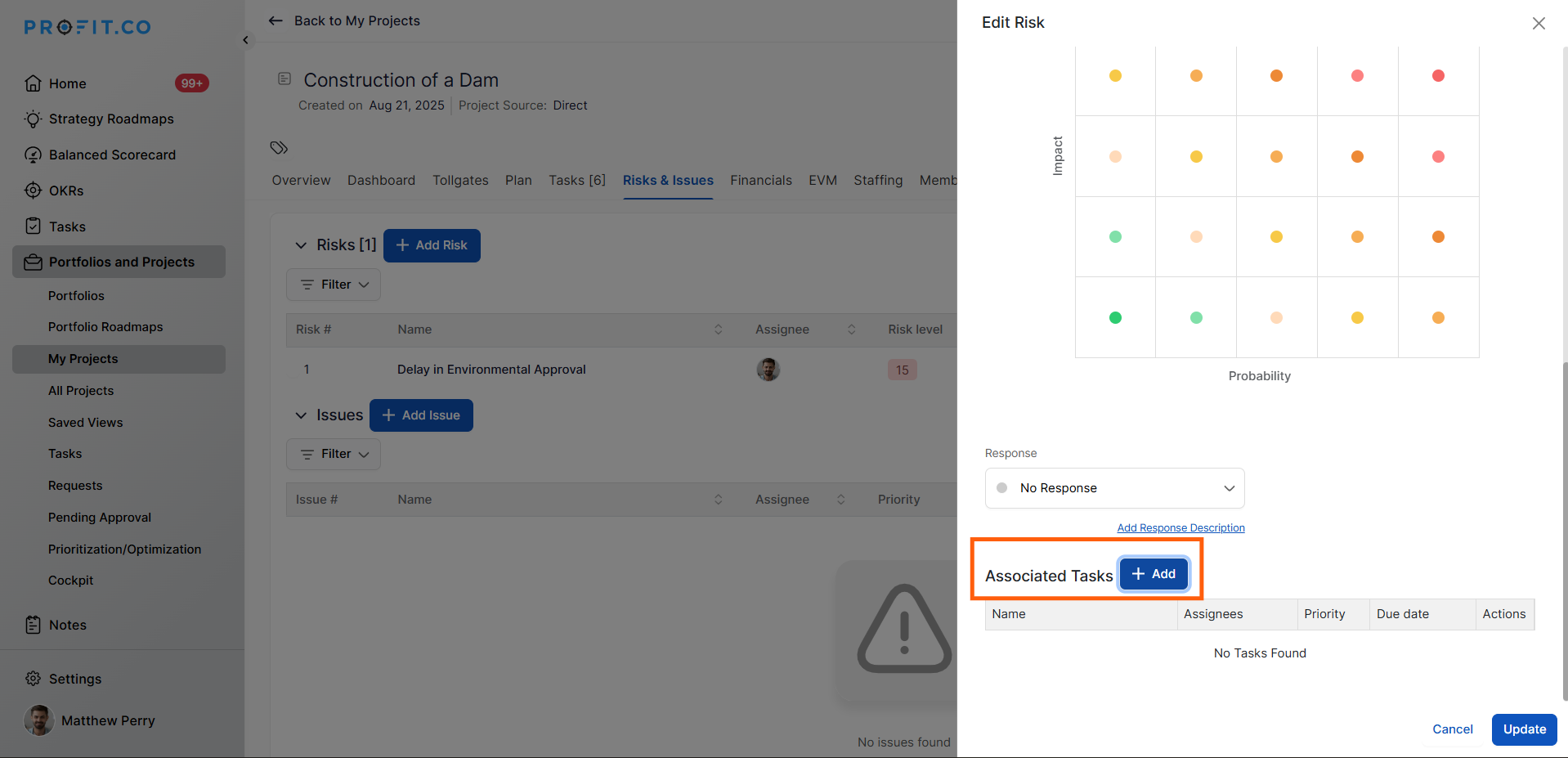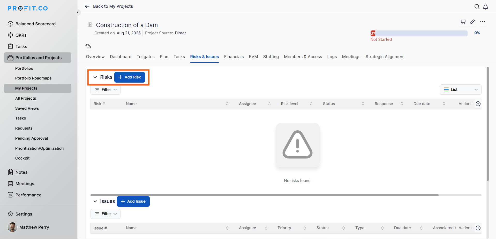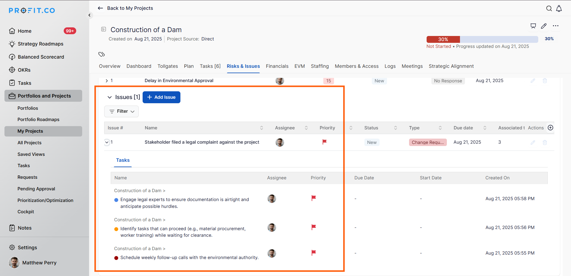 Profit.co now offers users the ability to manage project uncertainties with the new Risks & Issues option in the Project and Portfolio Management (PPM) module.