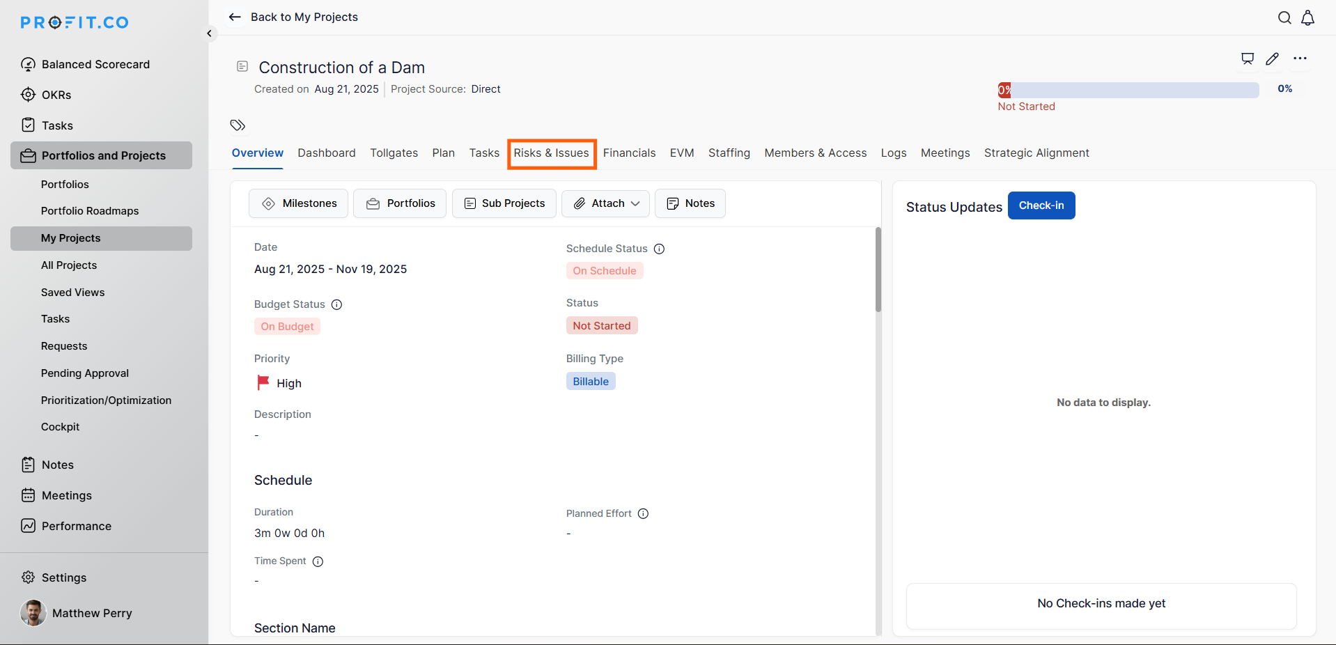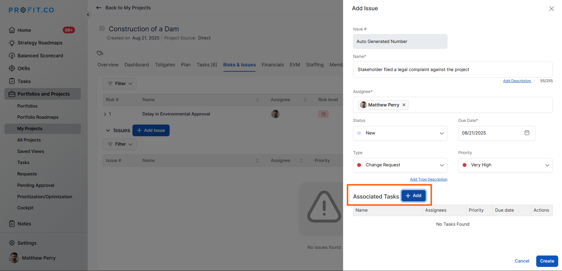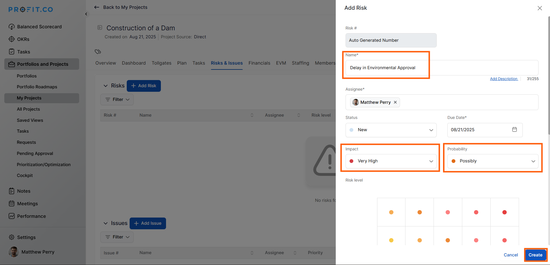 Profit.co now offers users the ability to manage project uncertainties with the new Risks & Issues option in the Project and Portfolio Management (PPM) module.