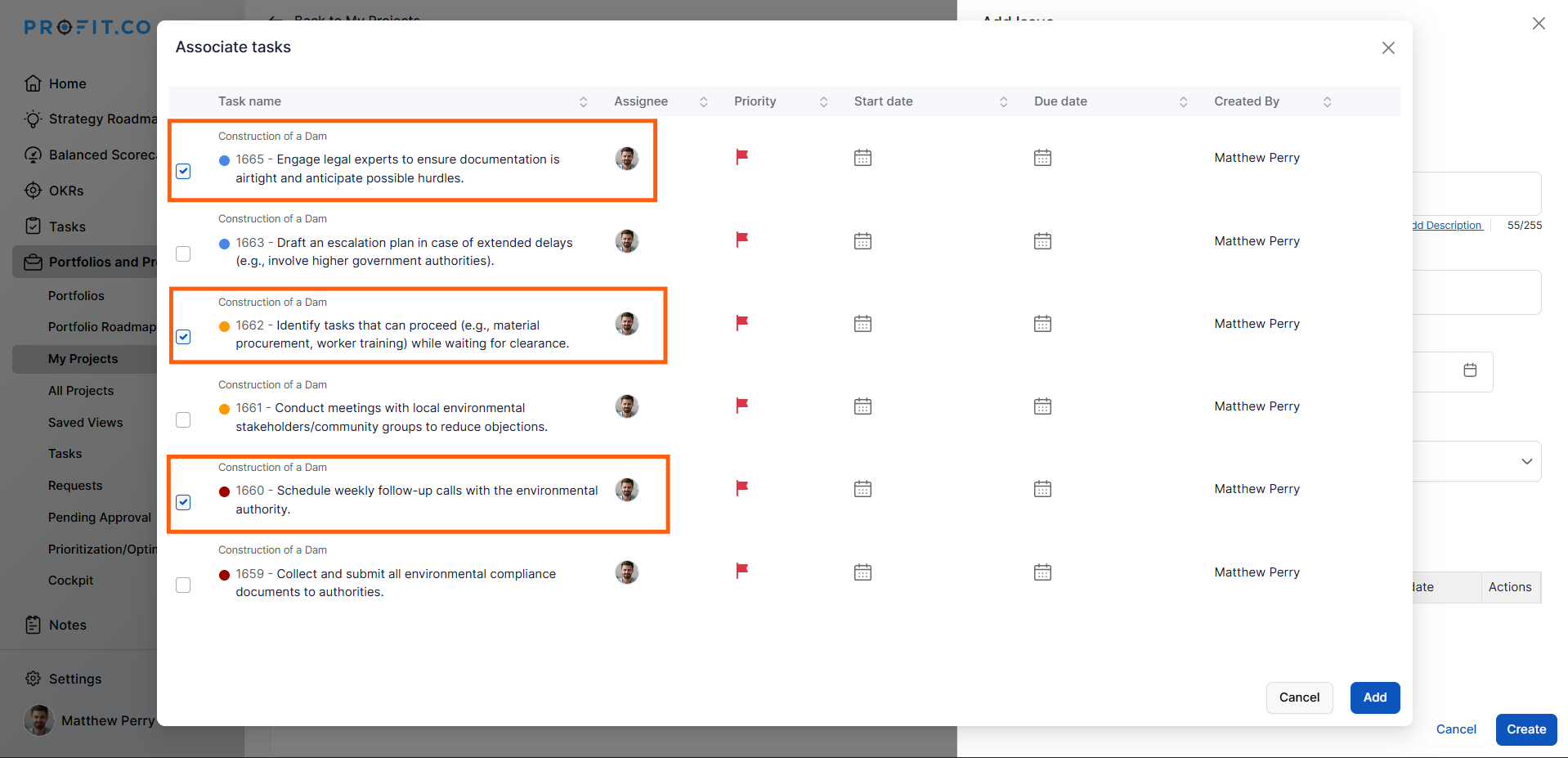 The associated tasks will now appear in the Issue Dashboard for ongoing management.