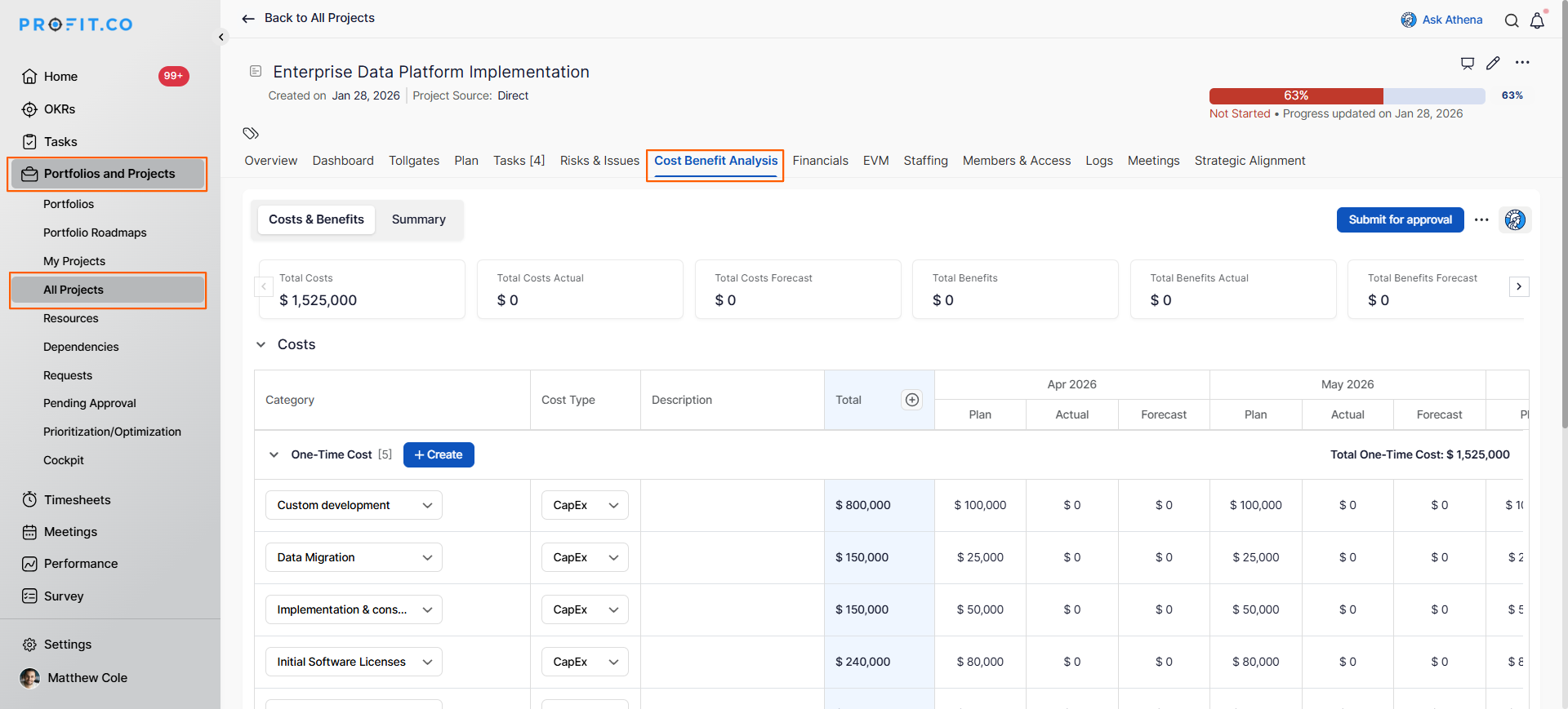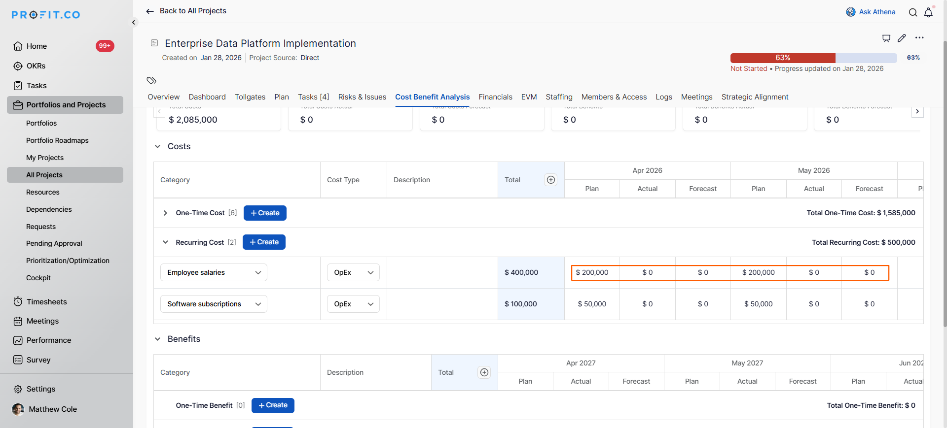 In Profit.co, financial forecasting allows you to project and adjust cost estimates beyond your initial planned values, ...Read more