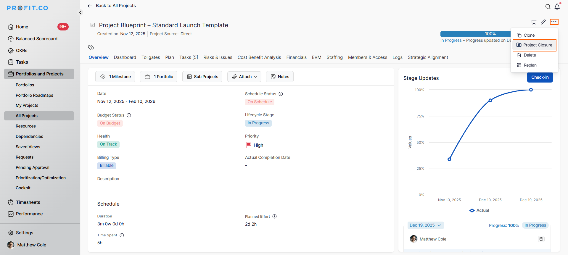 - What is project closure in Profit.co?