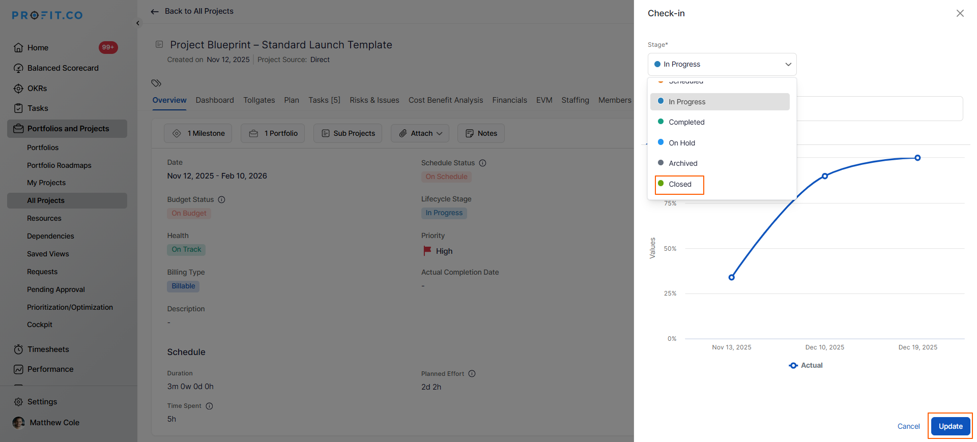 - Select Project Closure from the dropdown