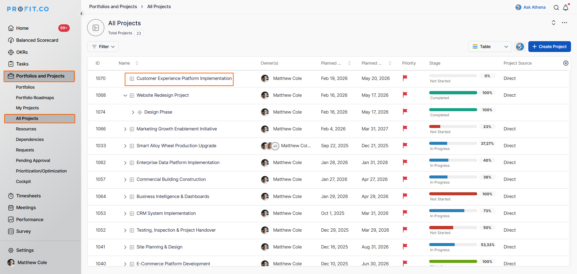 - Navigate to Portfolios and Projects from the left navigation panel.