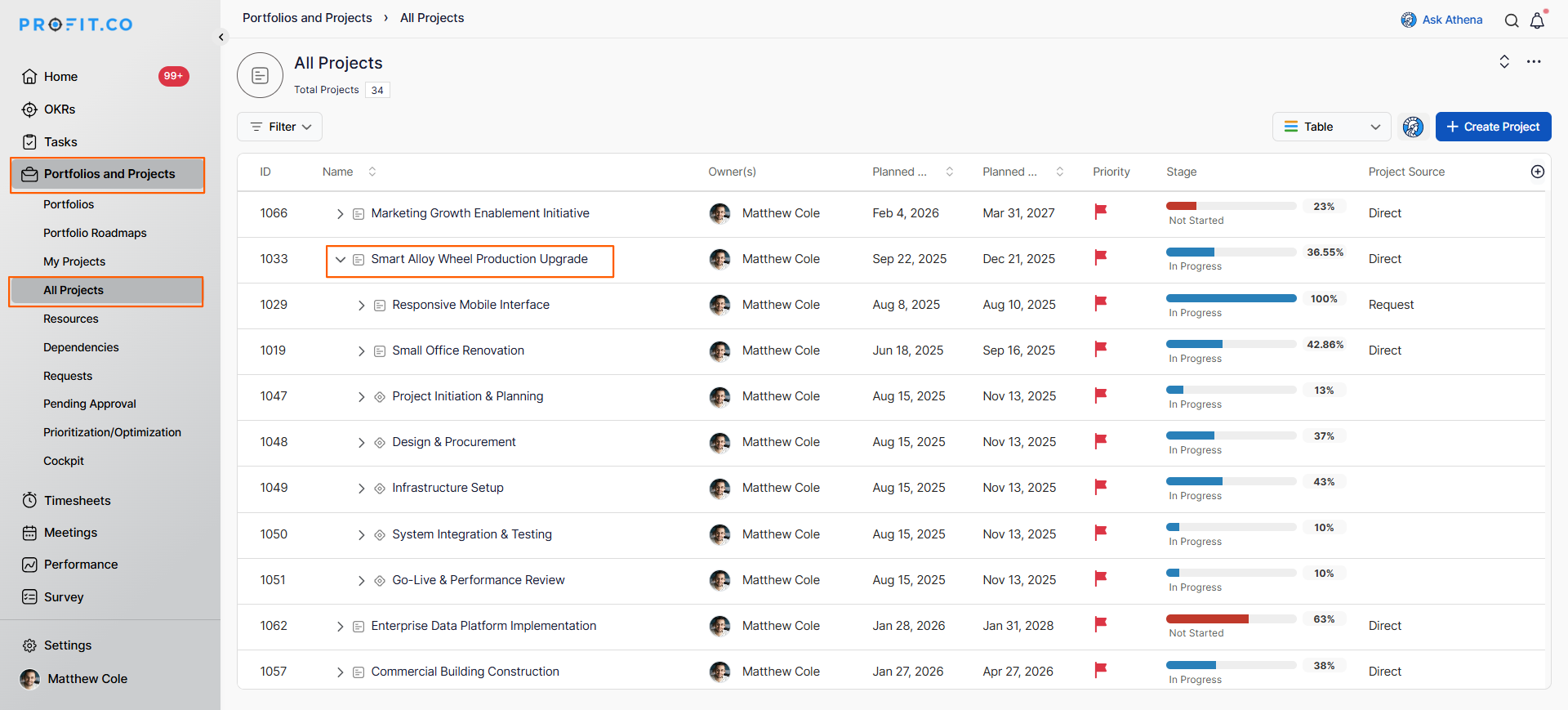 Click on Portfolios and Projects from the left navigation panel.