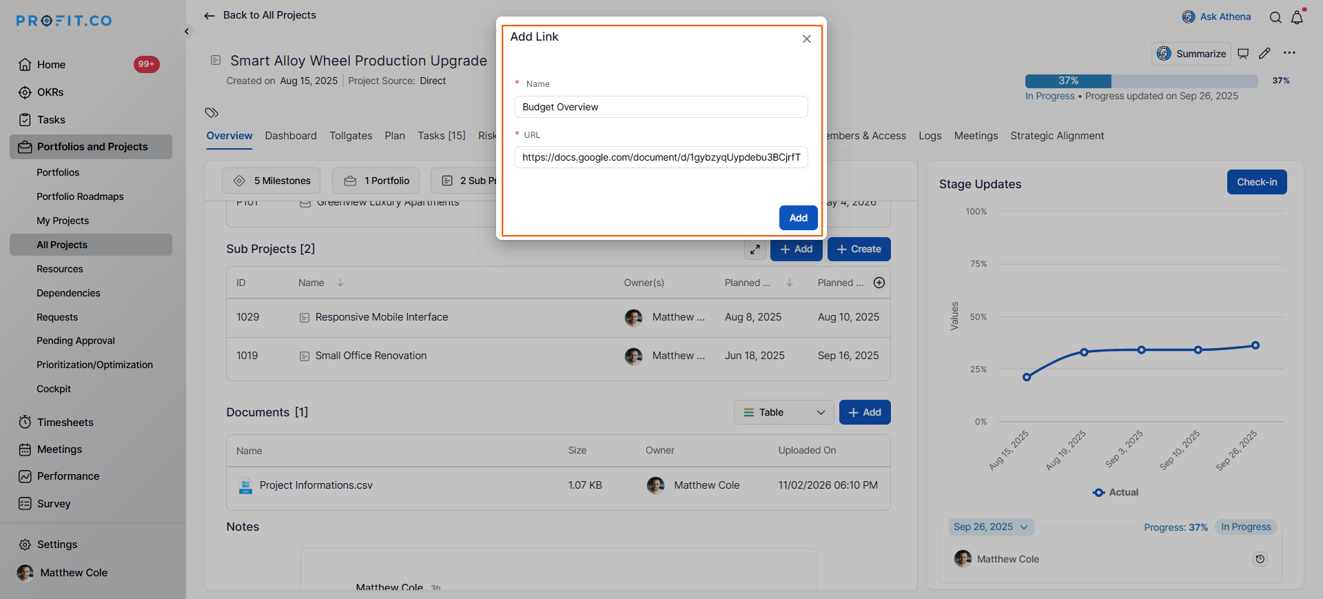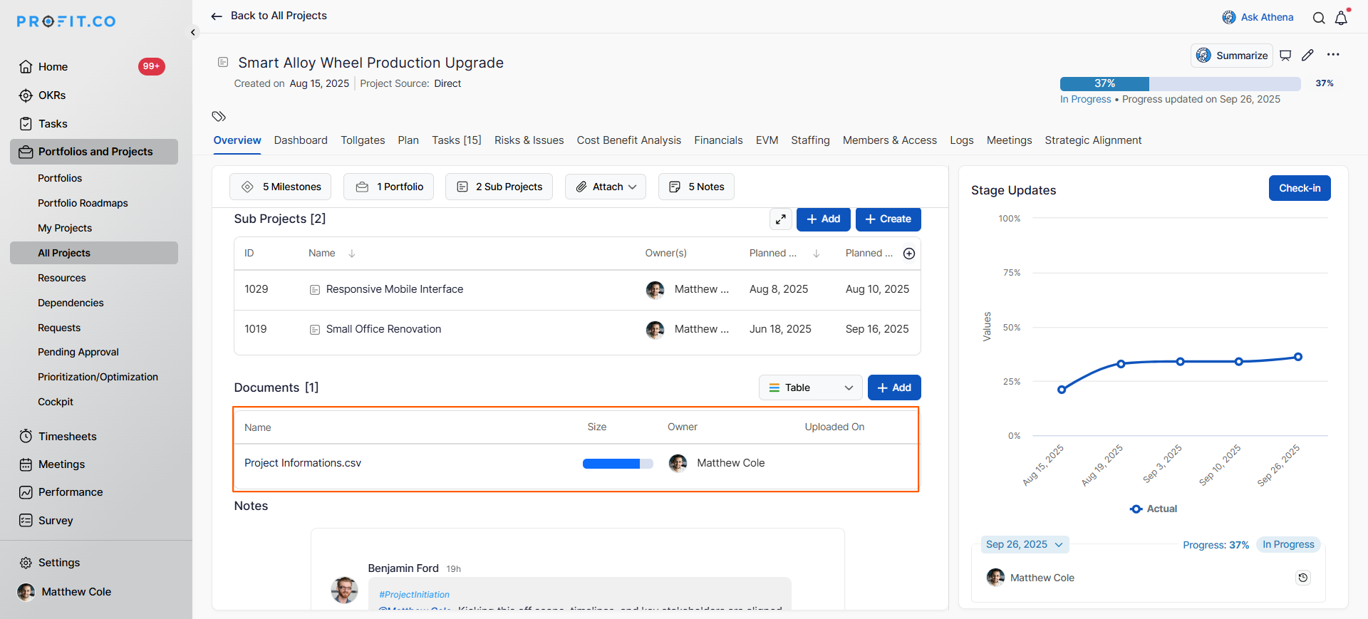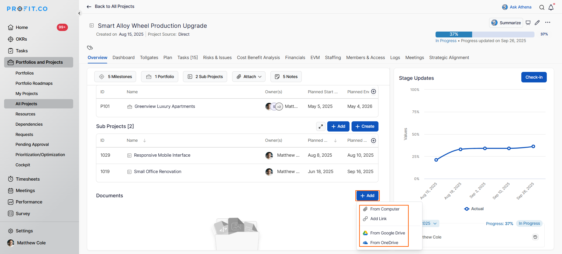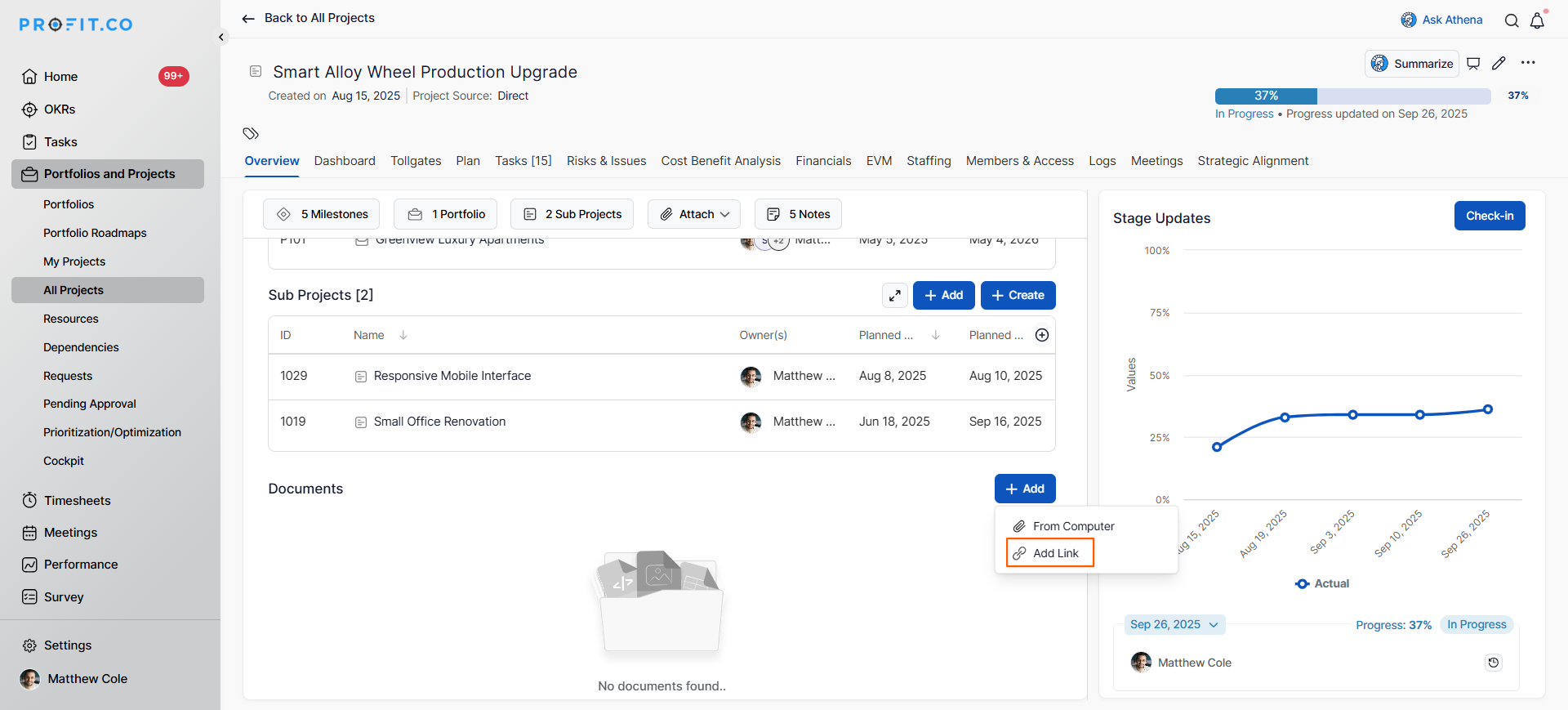 In Profit.co, the Document Repository allows you to centralize all project-related files and links in one location, making it easy for team members to access important documents, resources, and references throughout the project lifecycle.