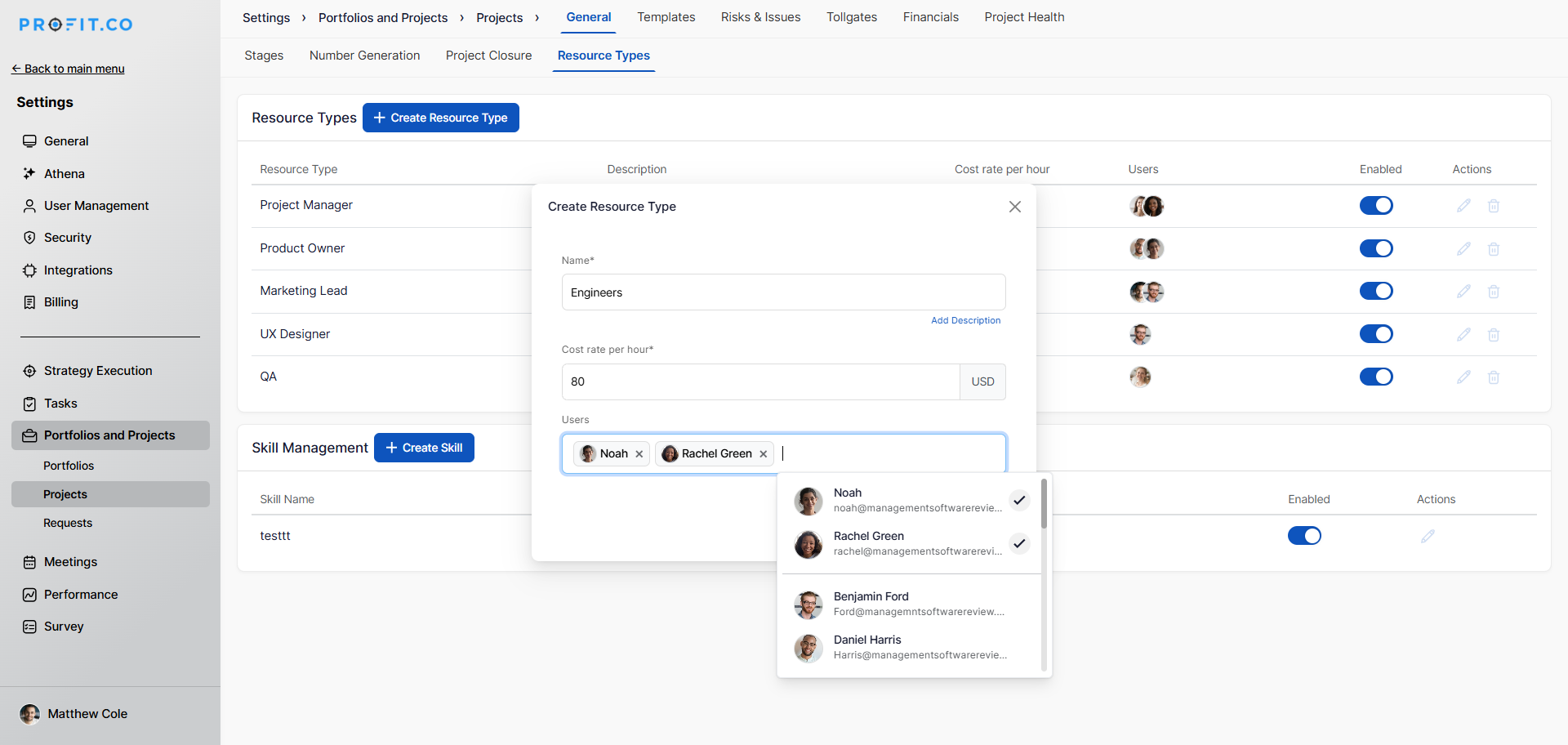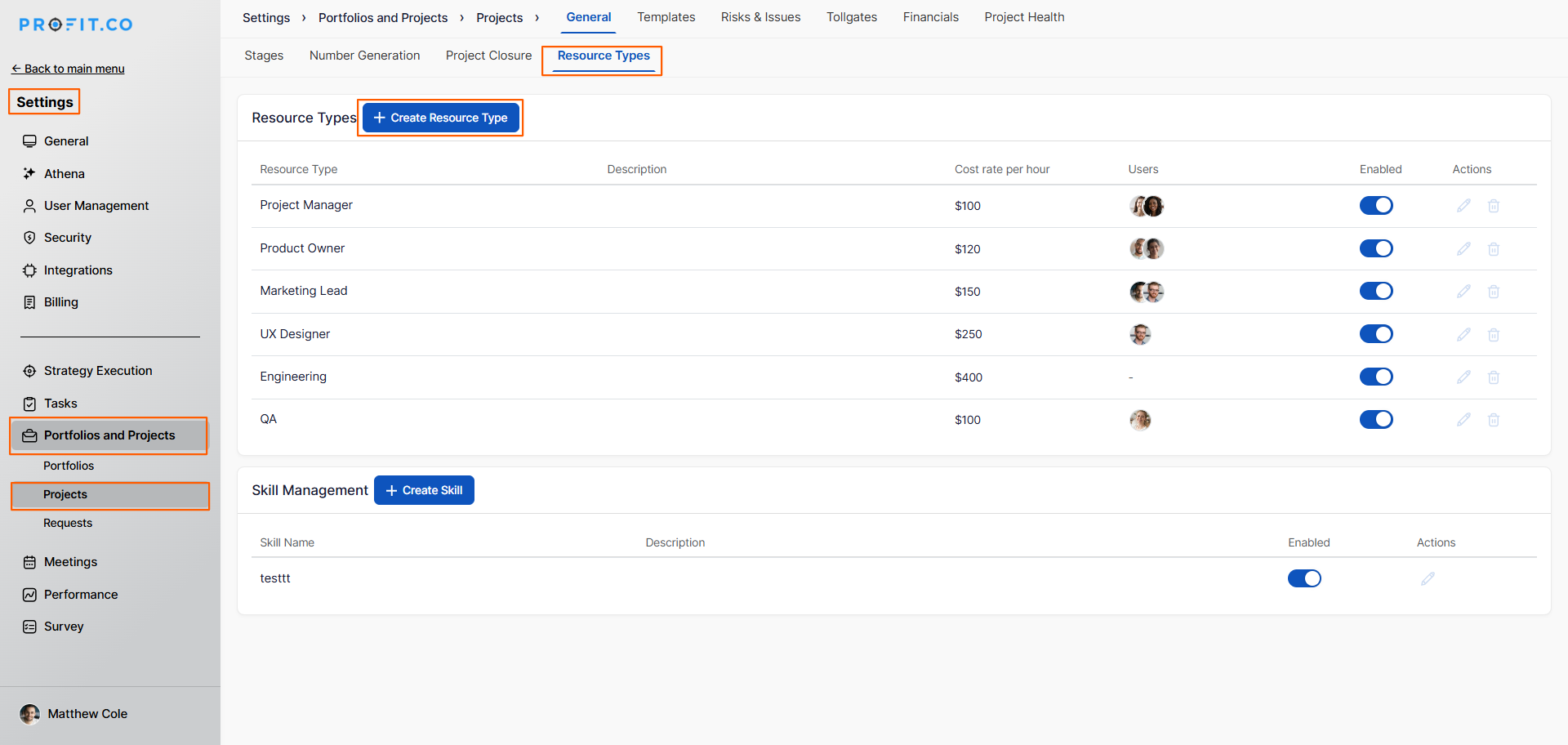 Why This Matters: Resource types define standardized rate cards for different roles or skill levels. Creating these is the foundation for cost tracking.
