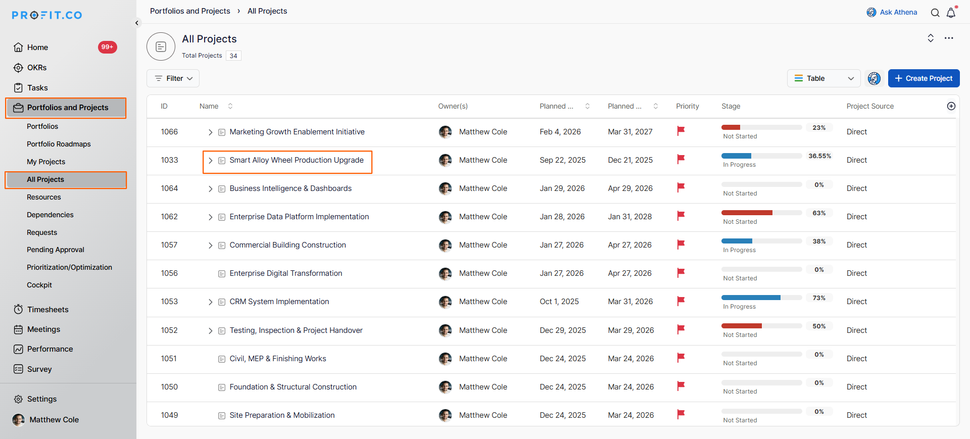 - Click on Portfolios and Projects from the left navigation panel.
