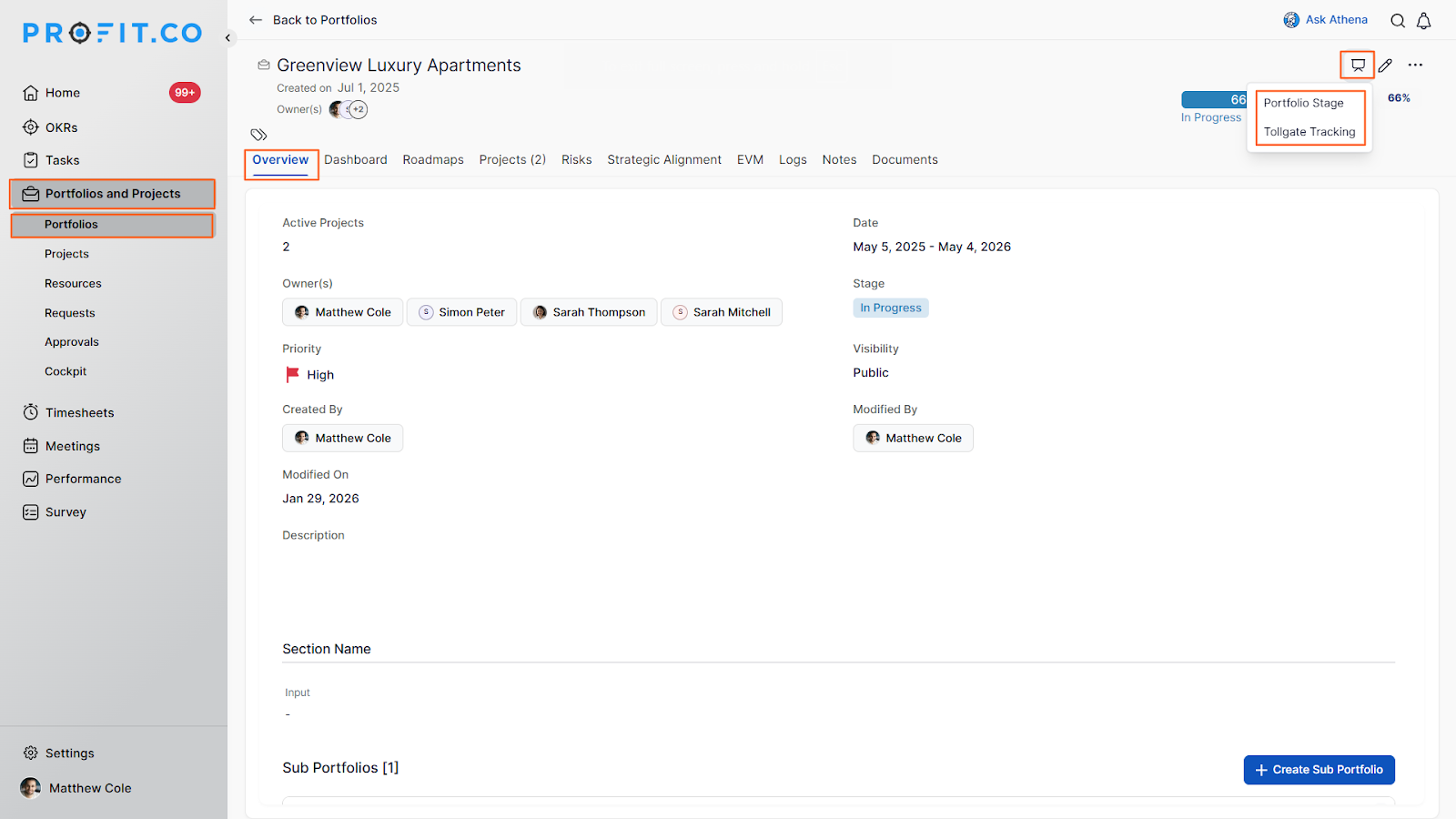 - Click on Portfolios and Projects from the left navigation panel.