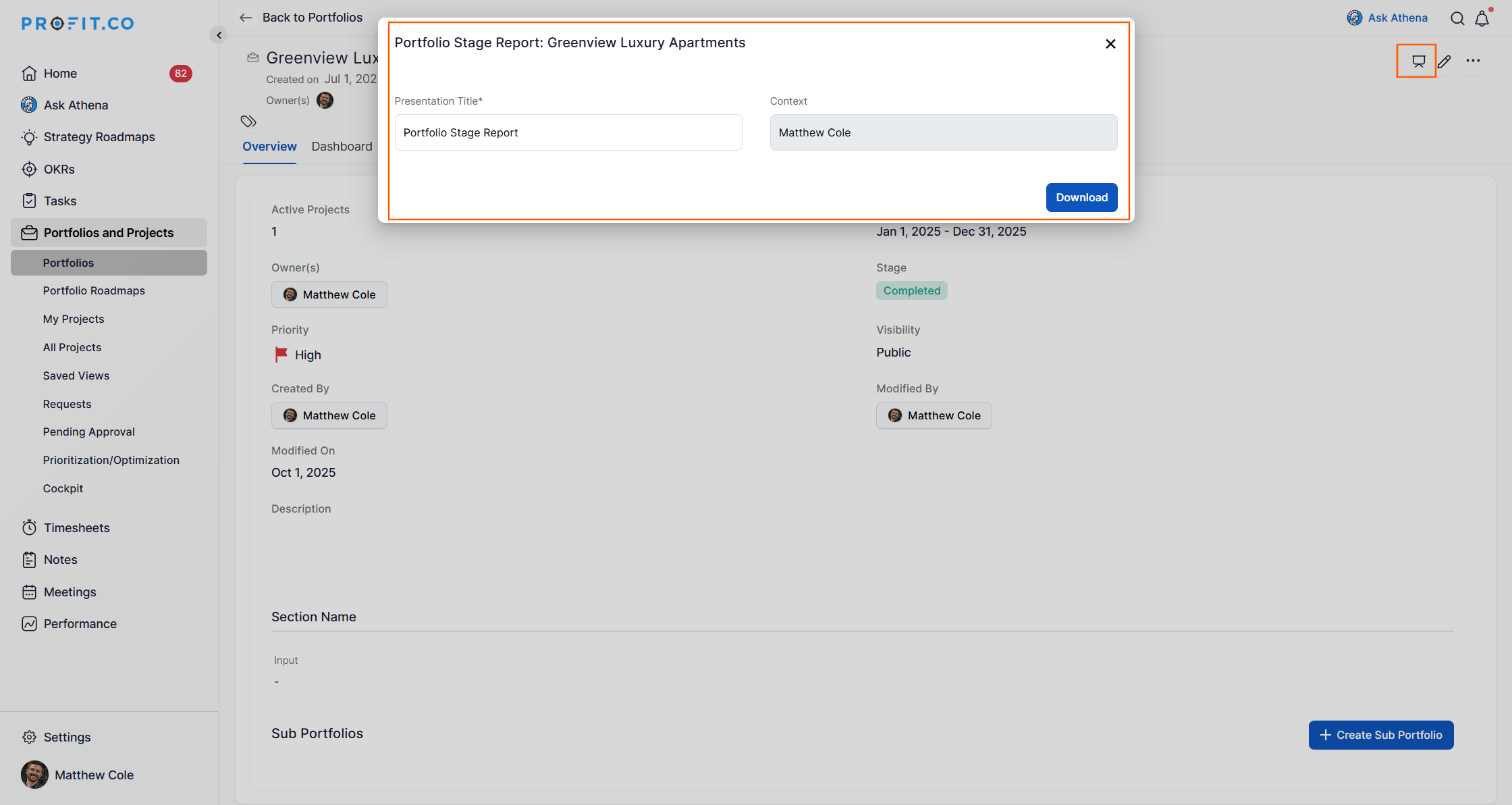 Profit.co provides the ability to create Portfolios to efficiently organize and manage multiple projects in one place.
