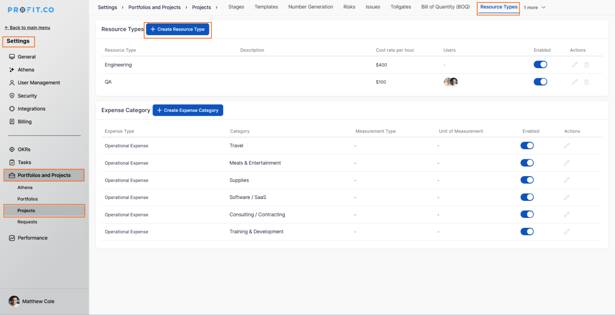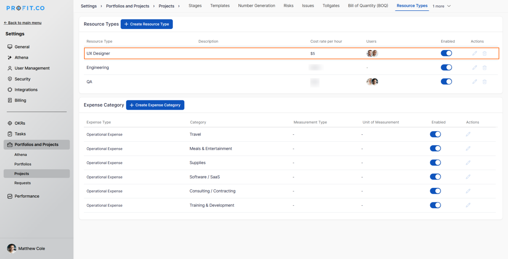 es. You can update the cost rate in Settings → Portfolios and Projects → Resource Type.