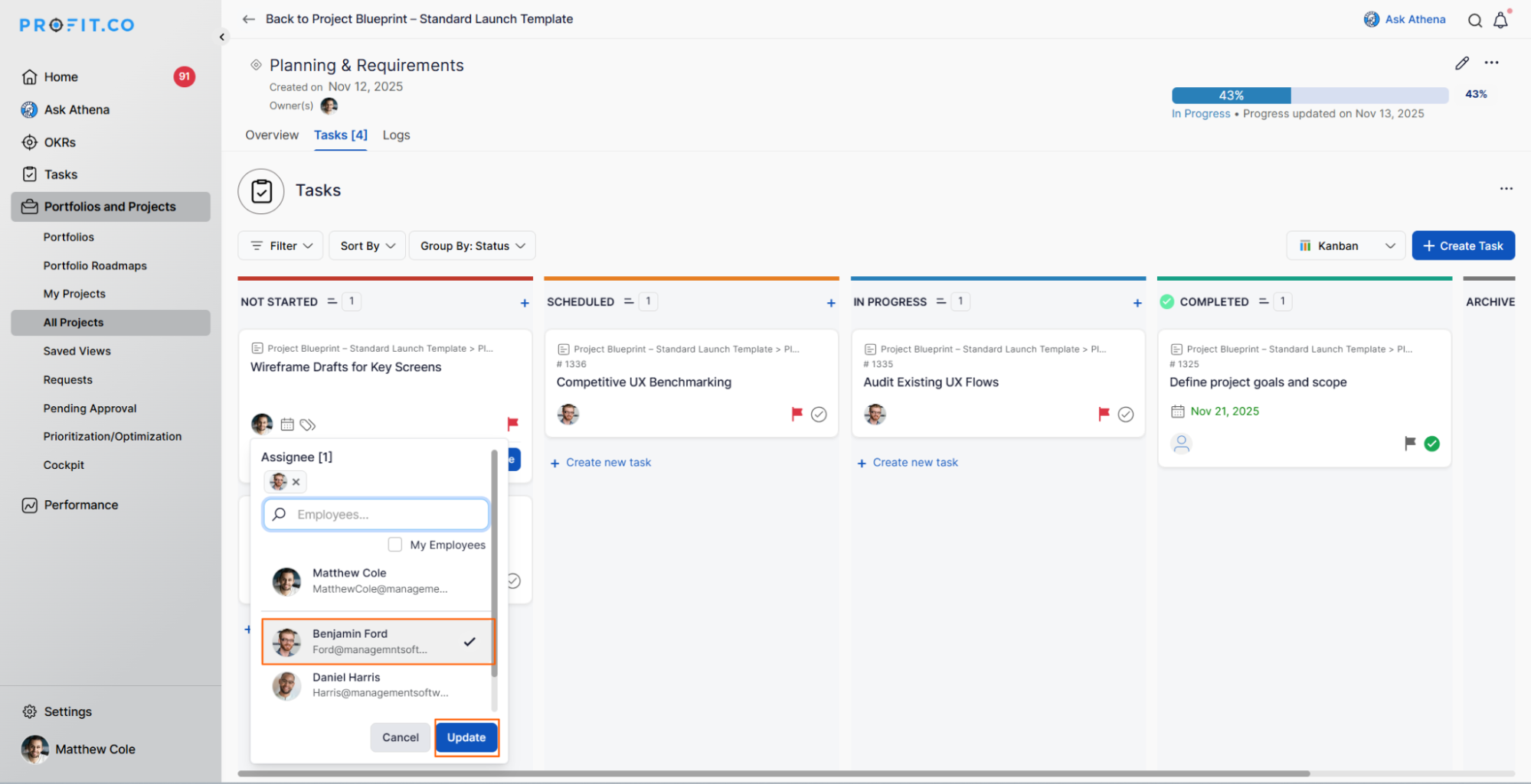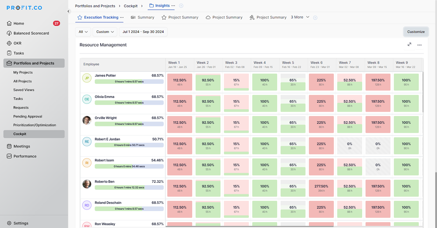 This ensures timely completion of tasks, better visibility into project performance, and smarter resource distribution across portfolios.