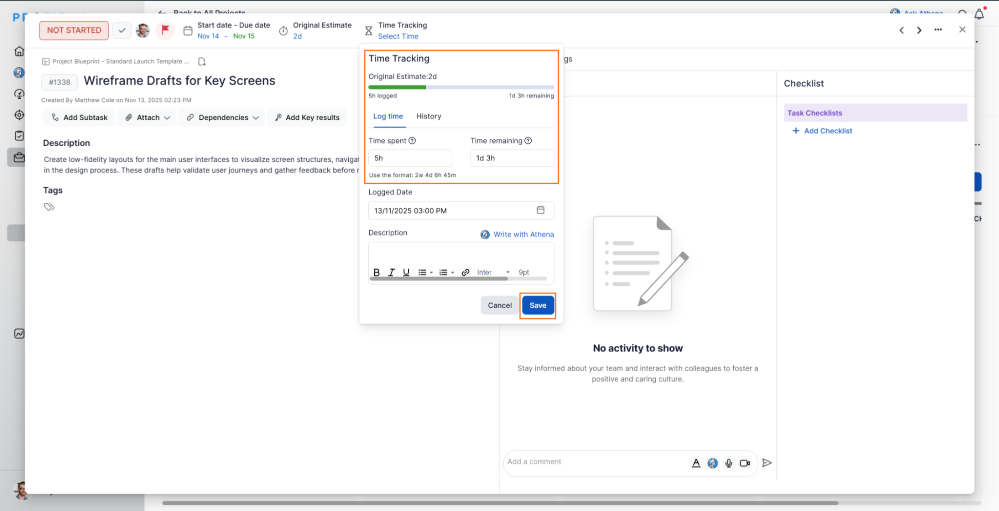 - Set the Start Date and Due Date, and enter the Estimated Hours.