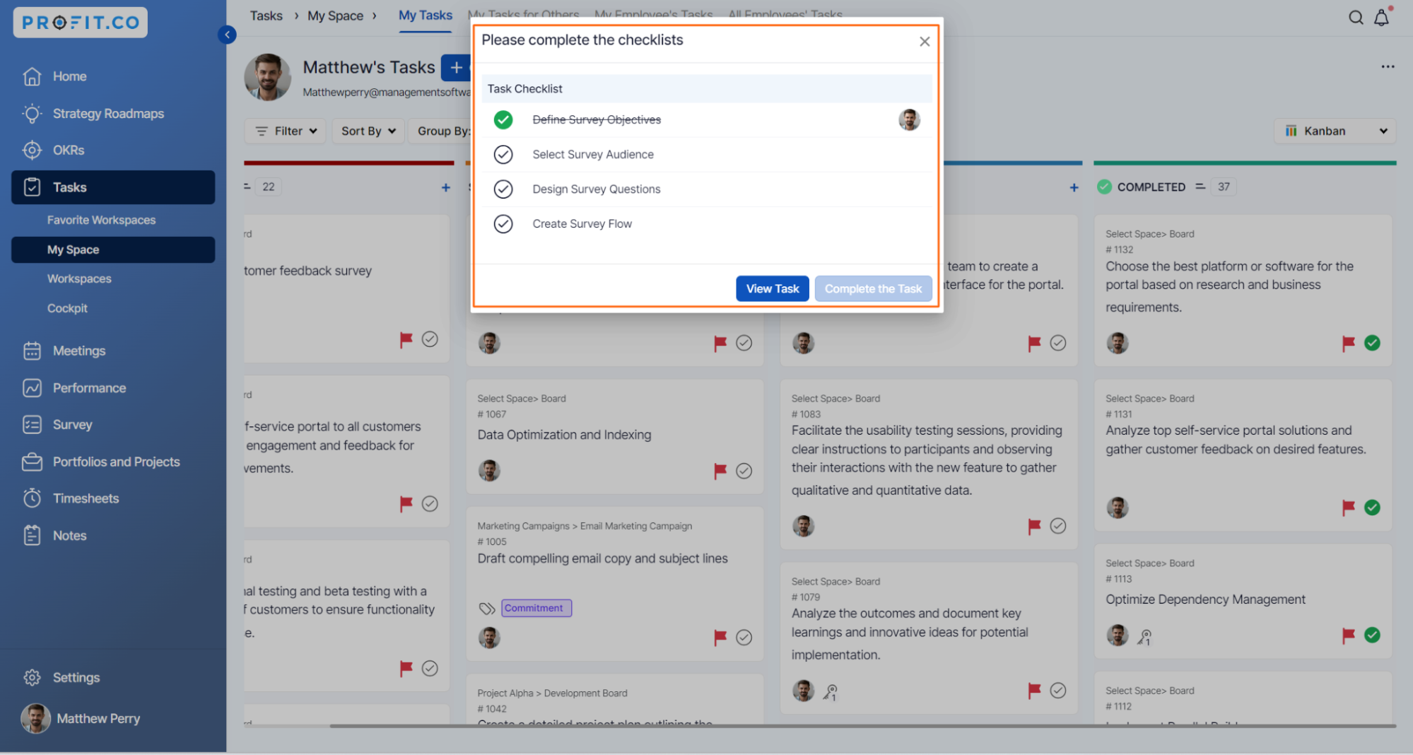 Profit.co allows users to add checklists to tasks individually and track the progress of each task.