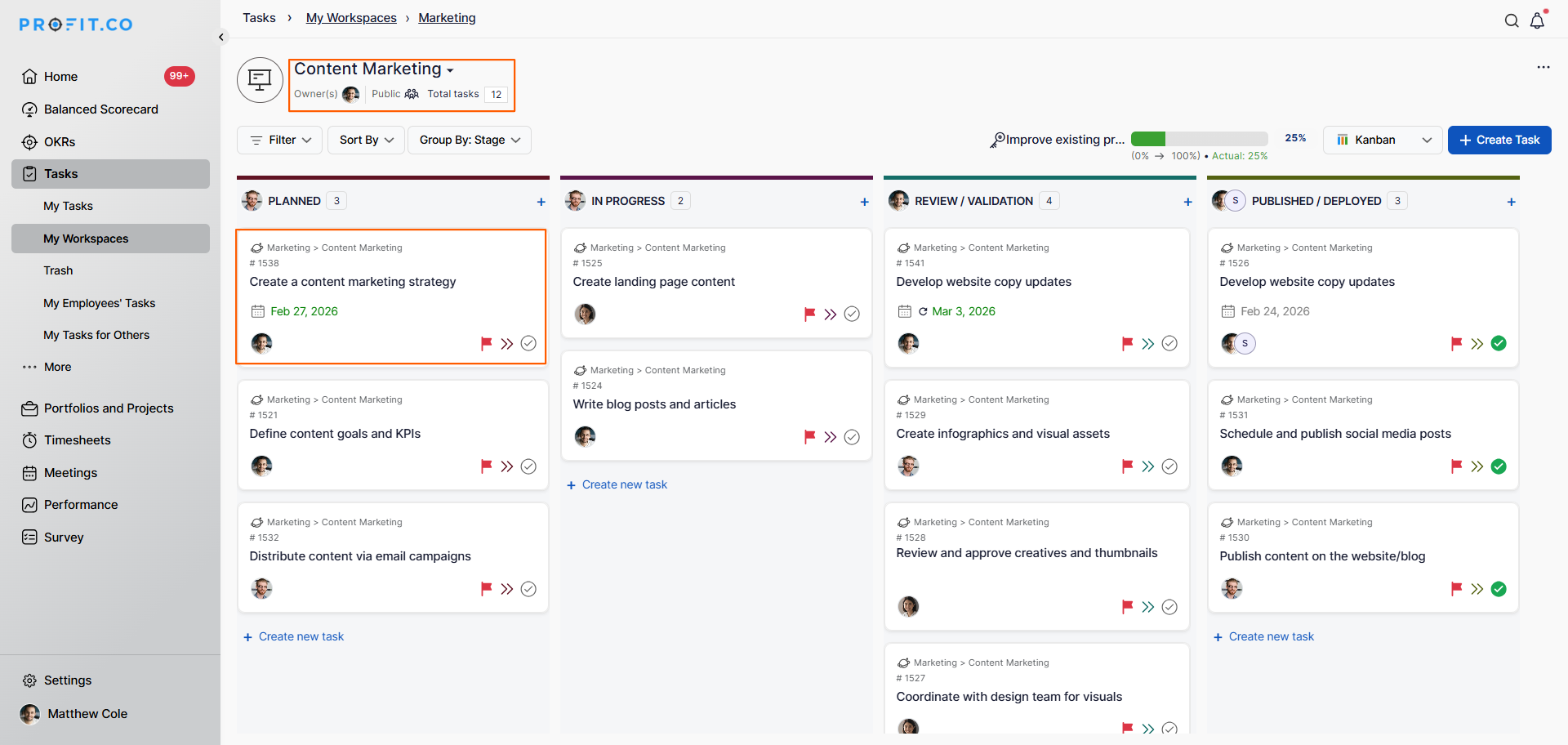 In Profit.co, the My Tasks Dashboard provides comprehensive analytics on your task performance, including schedule ...Read more