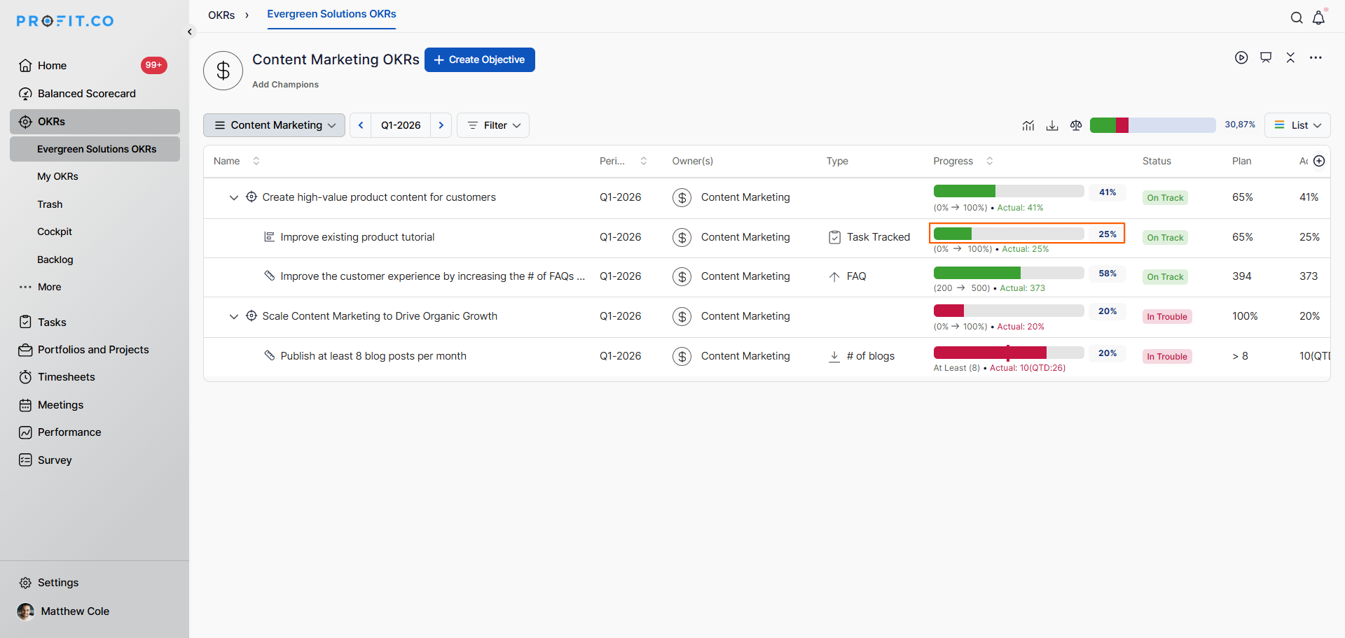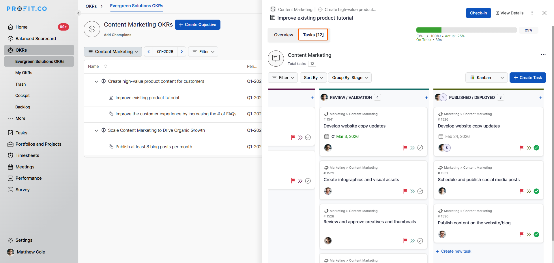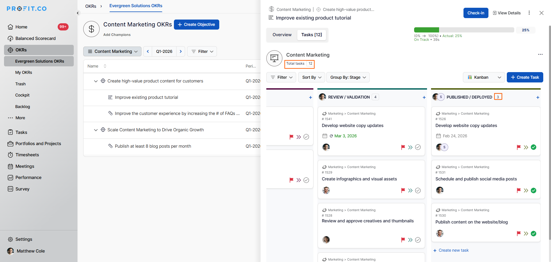 - Best practices for using Task Tracked Key Results in Profit.co