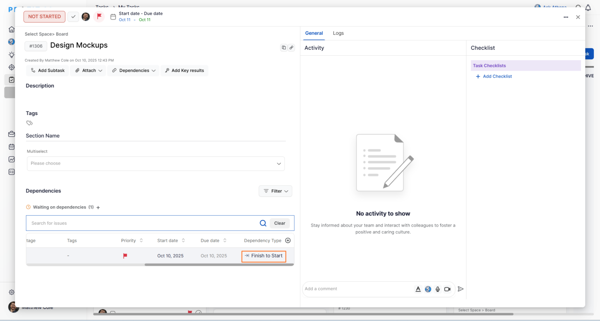 - Click on the Dependencies option in the task detail view.