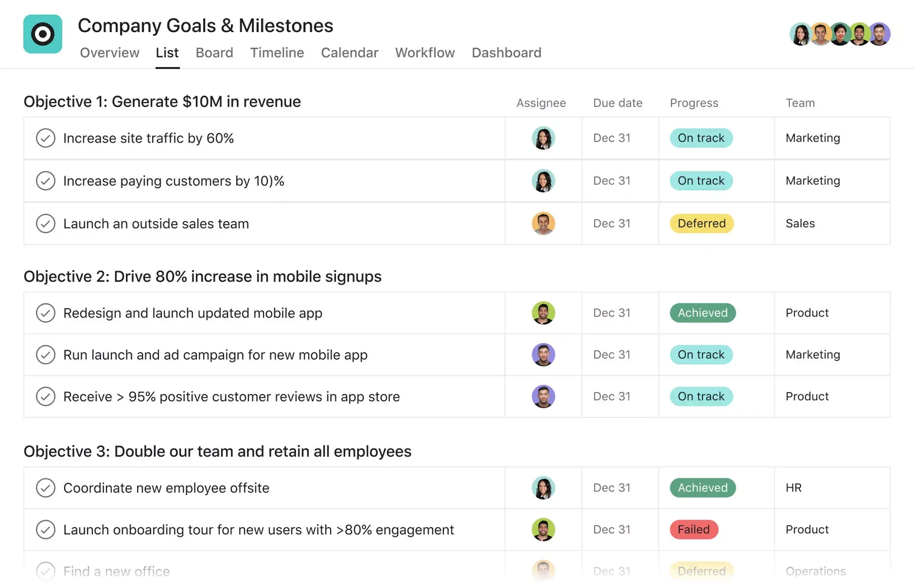 Best for: Organizations already invested in Asana for project management who want to add OKR tracking without introducing another tool.