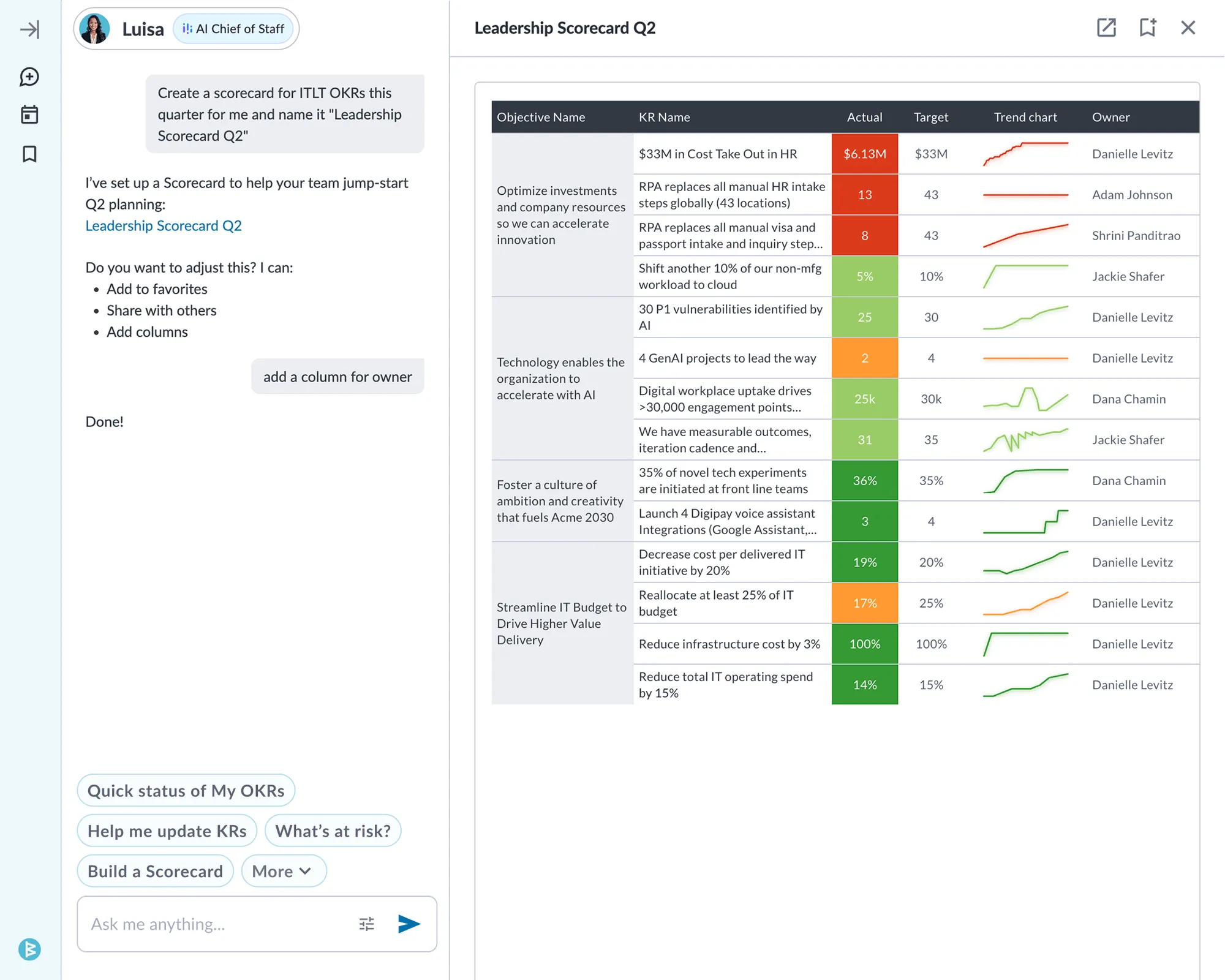 WorkBoard (including Quantive) – Advanced Analytics and Coaching