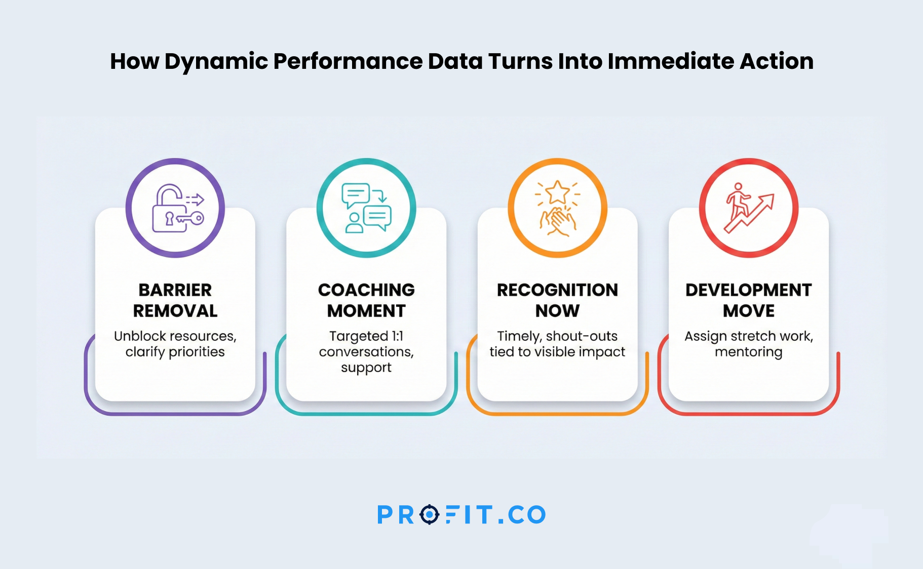 Most businesses already have basic systems in place, such as tools for managing projects, platforms for communication, and software for tracking goals. Dynamic performance management doesn’t replace these systems; instead, it adds an intelligent layer that combines insights from them
