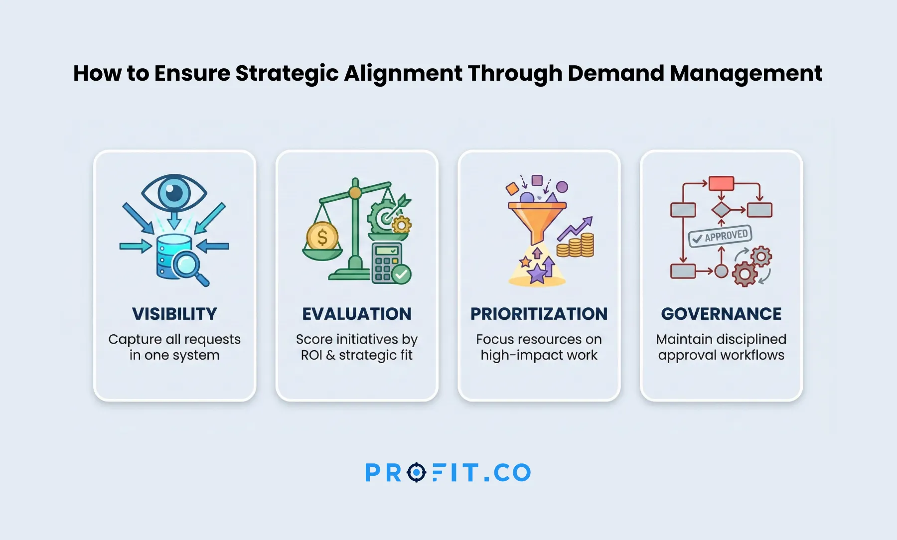 When implemented strategically, demand management ensures that each project and investment contributes meaningfully to long-term organizational outcomes.