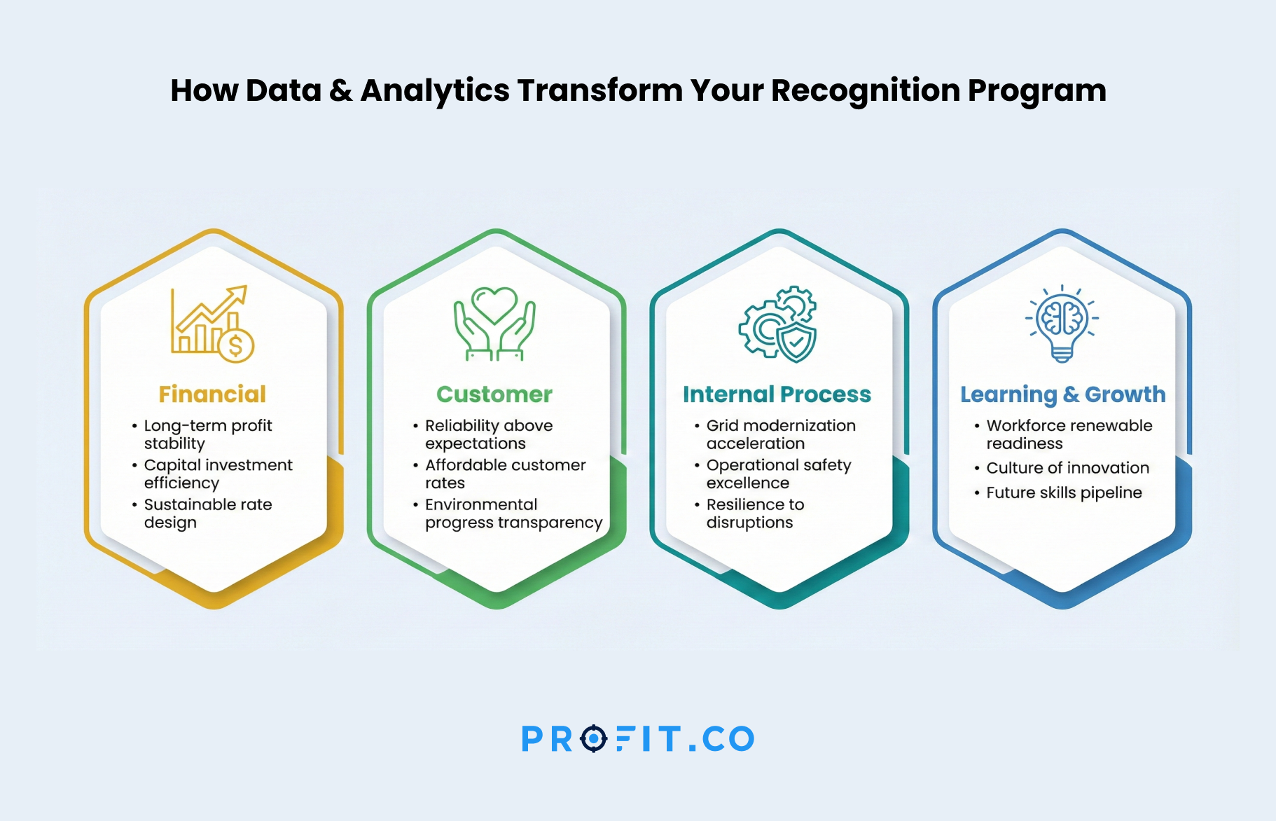 Energy and utilities companies have a unique strategic problem: they need to find a way to balance making money with being environmentally responsible, being reliable with being innovative, and giving shareholders a good return on their investment. The Balanced Scorecard framework is the best way to handle these conflicting priorities from four different points of view. Profit.co makes it possible for energy companies to use a Balanced Scorecard by bringing together strategic goals, operational KPIs, and quarterly OKRs. This helps utilities make the difficult switch to renewable energy while keeping the grid reliable and their finances in good shape.If you run an Energy or Utilities company today, you’re doing something that would have seemed impossible ten years ago. While having aggressive sustainability goals, keeping the grid 99.9% reliable, meeting the needs of regulators in multiple jurisdictions, spending billions on modernizing infrastructure, and giving shareholders steady returns.