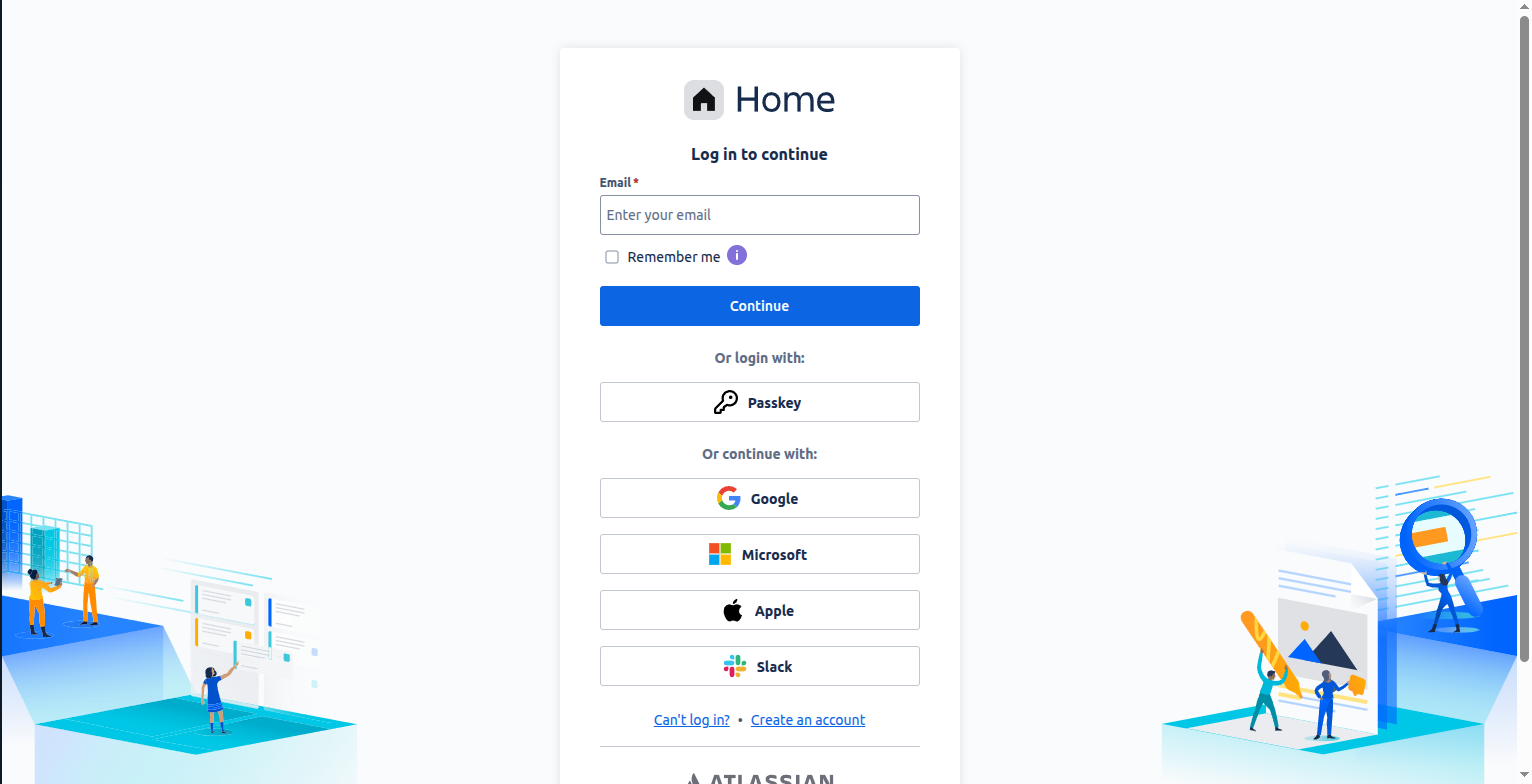 Go to the Atlassian https://id.atlassian.com website. Enter your email address on the login page and click on Continue or you can log in with Google.