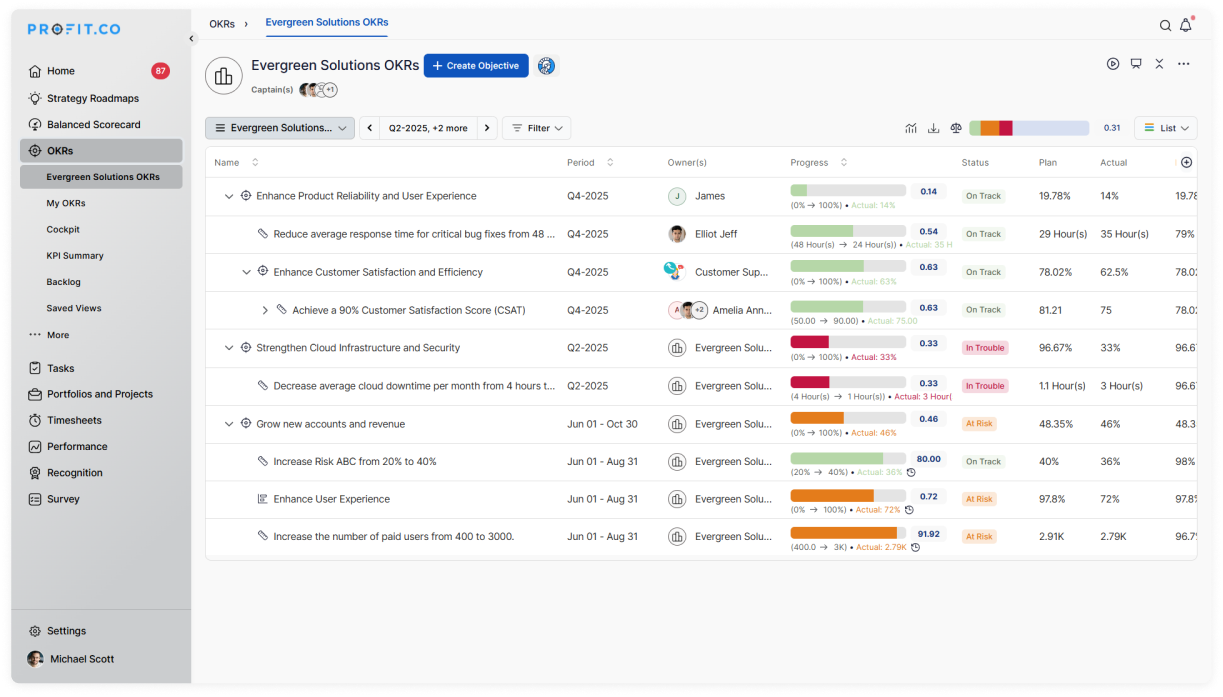 1. Profit.co – Best Overall Dynamic Performance Management Platform